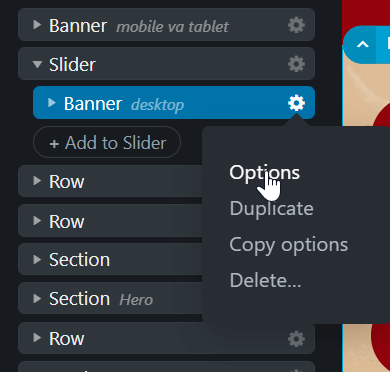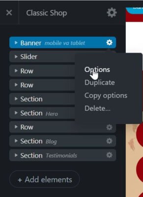 Nhấp chuột vào Icon ở dòng Banner -> Options